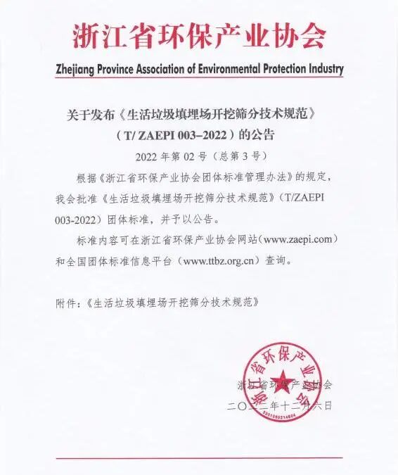 《生活垃圾填埋場開挖篩分技術規(guī)范》團體標準